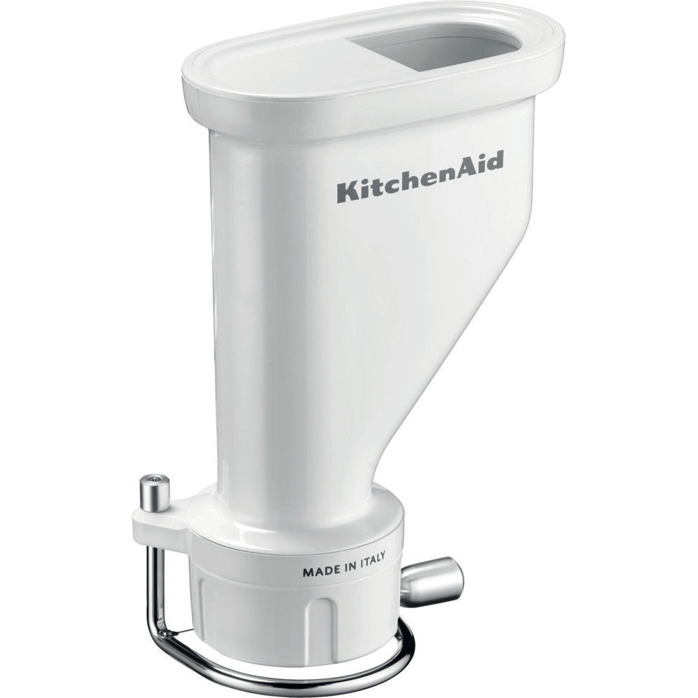 With the KitchenAid pasta press accessory, you have complete control over the length of your pasta shape. It has a built-in wire cutter, so you can simply cut when the emerging dough is the length you want.
