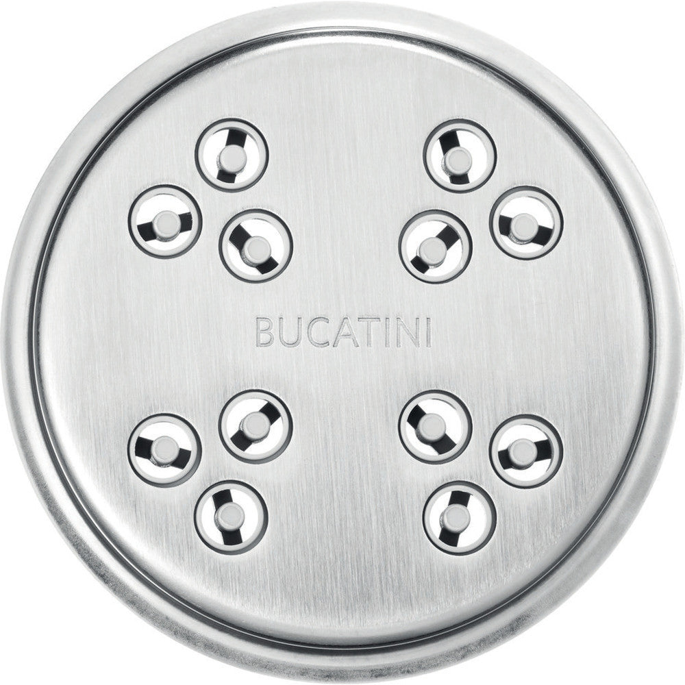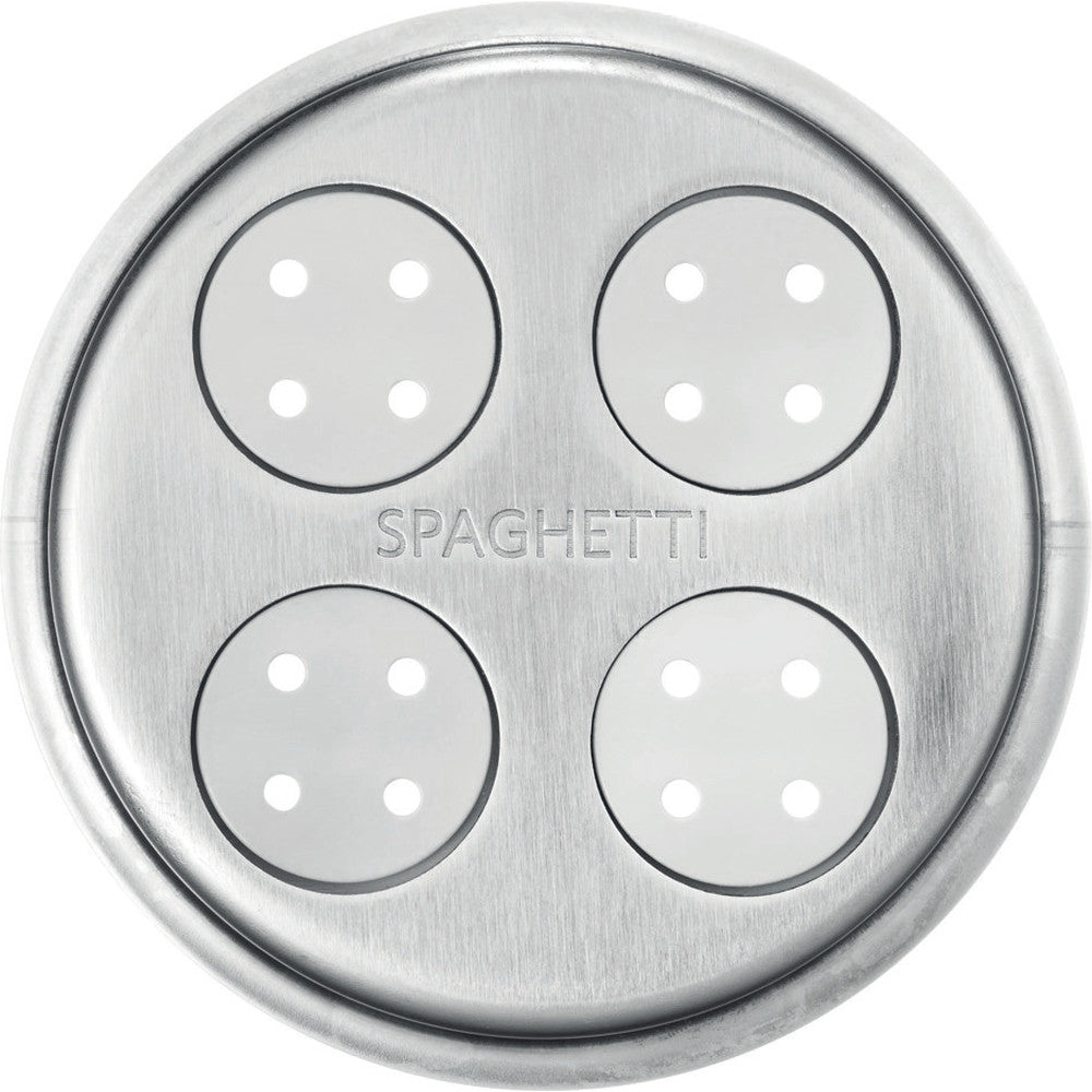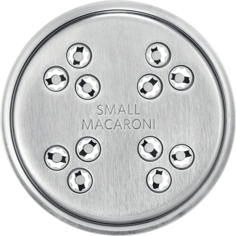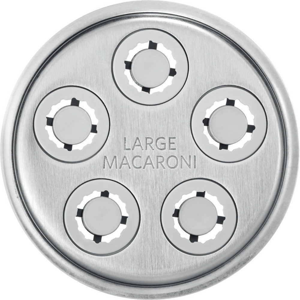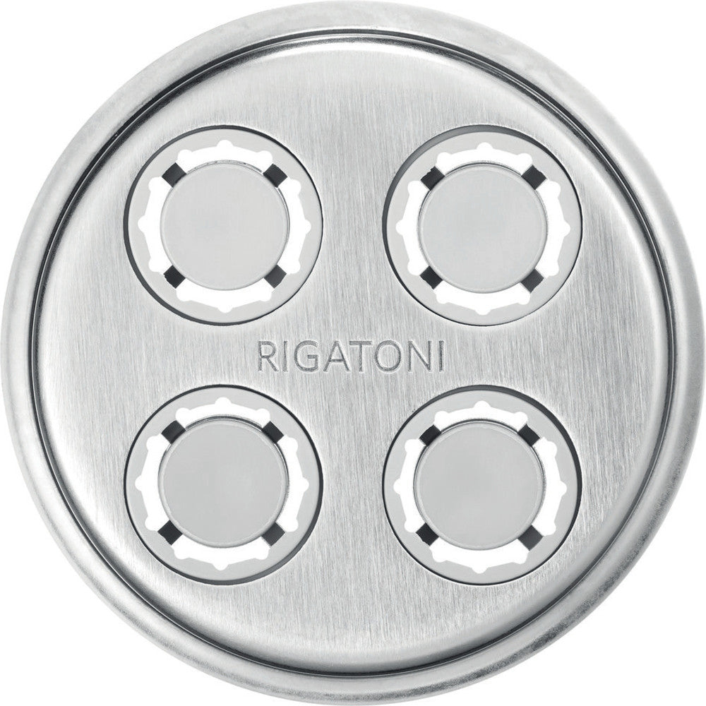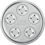 • – 6 interchangeable pasta discs for spaghetti, bucatini, rigatoni, fusilli, large macaroni and small macaroni