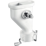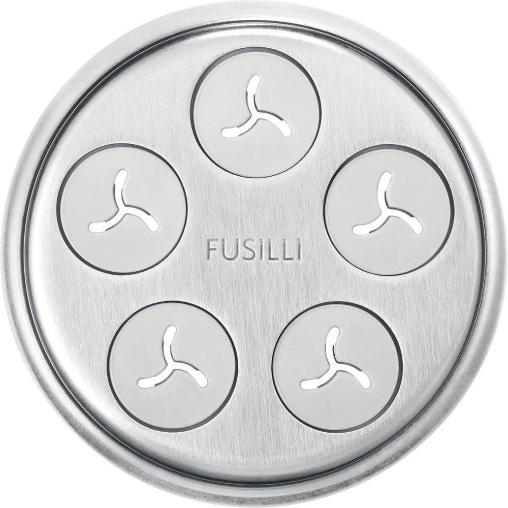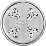 Our stand mixer pasta press is here to help you get out of your pasta rut, with an impressive 6 fresh pasta shapes to choose from. This clever tool turns out smooth, perfectly-formed spaghetti, bucatini, rigatoni, fusilli, and large or small macaroni. Everyone can take turns choosing their shape, feeding the dough into the hopper and watching the shapes appear.
