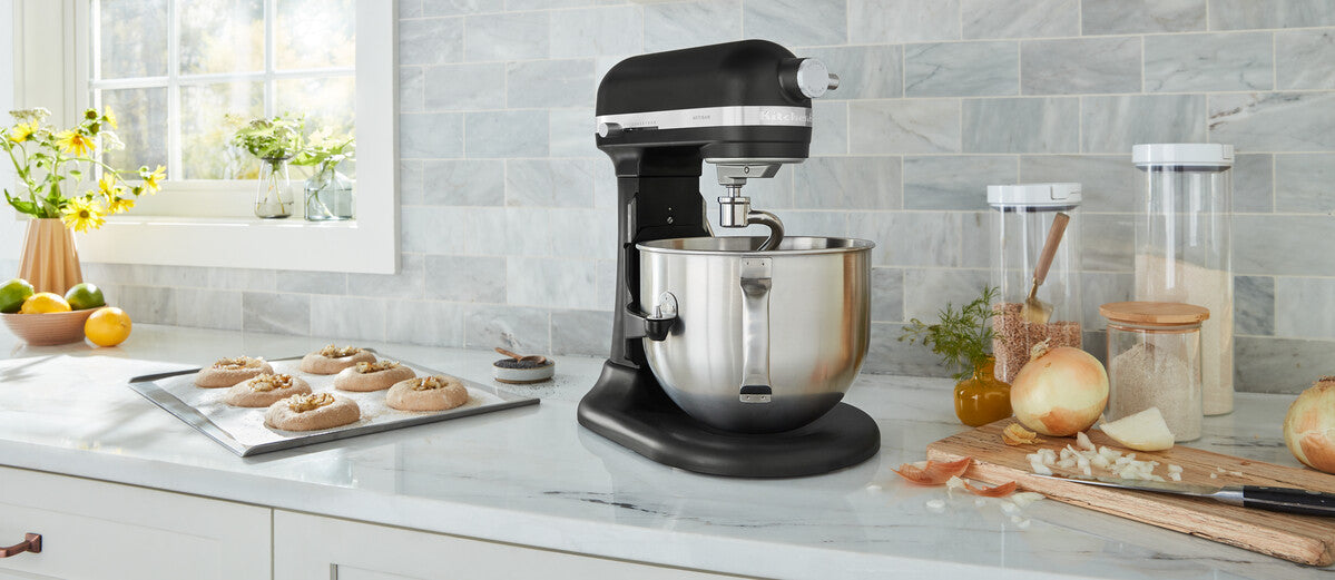 However much you’re making, and whatever the ingredients, bowl-lift style stand mixers make it easy with their power and large capacity. They’re a little taller and bigger than tilt-head mixers, and the bowl firmly locks into place, making them sturdier too, for heavy mixtures.