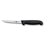 Victorinox Fibrox boning knife with curved 12 cm long blade and black non-slip ergonomic plastic handle.