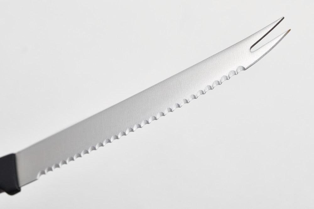 • Tomato knife - The finely serrated edge of the tomato knife smoothly cuts through the firm tomato skin, while the split tip lifts the slices. The knife is also suitable for cheese and fruit.
